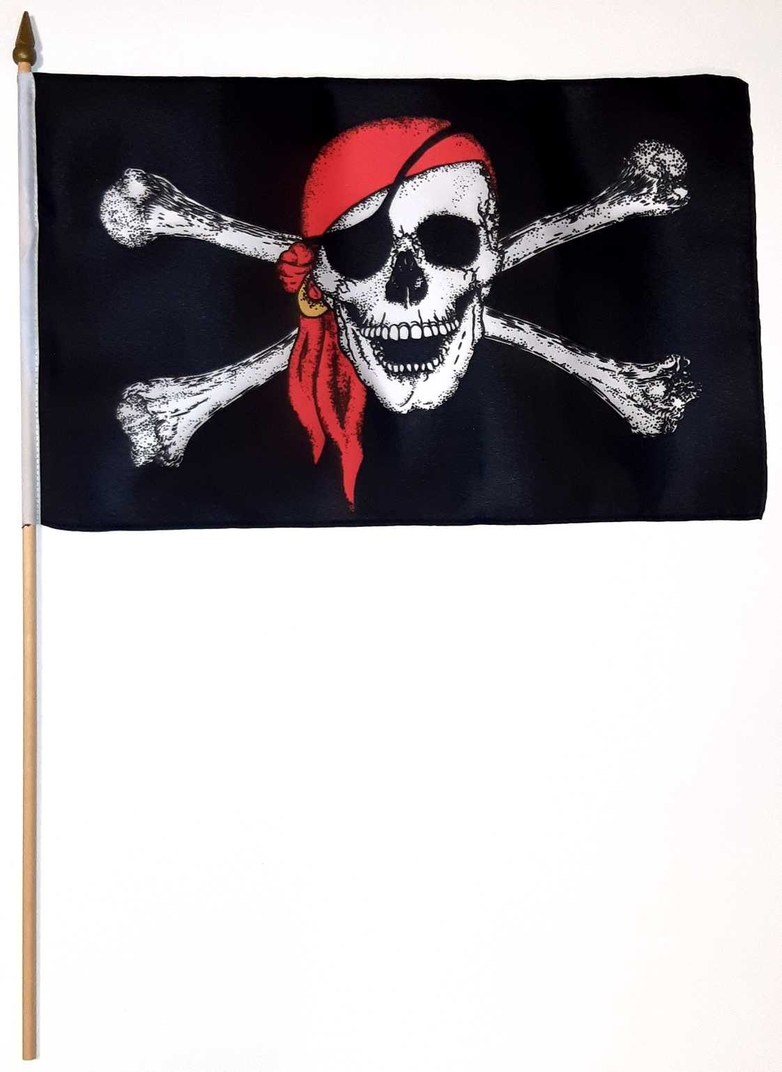 FINA DÖSKALLE HANDFLAGGOR I OLIKA STORLEKAR. DET FINNS TRE STYCKEN STORLEKAR PÅ PIRATFLAGGOR. OCH DE TVÅ MINDRE STORLEKARNA AV DÖSKALLEFLAGGORNA PÅ PINNE KAN MAN KÖPA BILLIGA FÖTTER TILL SÅ DE BLIR BORDSFLAGGOR. BORDSFLAGGA MED DÖSKALLAR PÅ TEX ÄR SNYGGT.