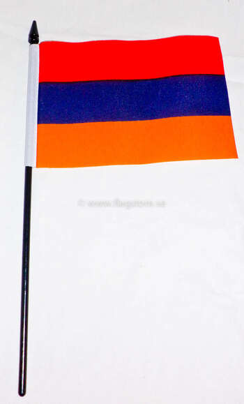 Armeniens handflagga av mediumstorlek kan du förutom att använda den i demonstrationer eller vid parader, tex sätta dem i bokhyllan eller vitrinskåpet. Armeniens handflaggor hos Flagstore.se av den här storleken kan även sättas i svarta plastfötter så det blir en bordsflagga. Olika Armenien bordsflaggor i fot som är snyggt tex vid middag eller bjudningar!! Armenisk flagga går naturligtvis även att använda tex i blombuketter. Sätta 2st Armeniska flaggor med pinnarna i kors på väggen är en annan idé. Att samla olika flaggor från alla länder man besökt på semestern, eller kanske besökt via arbetet är en gammal trevlig tradition.