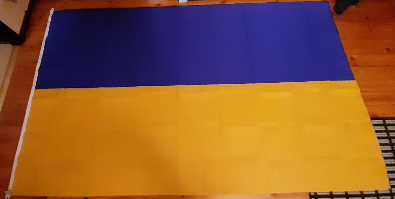 Ca 240x150cm ukrainsk sydd flagga mycket lämplig att representera såväl företag/föreningar som privatpersoner
