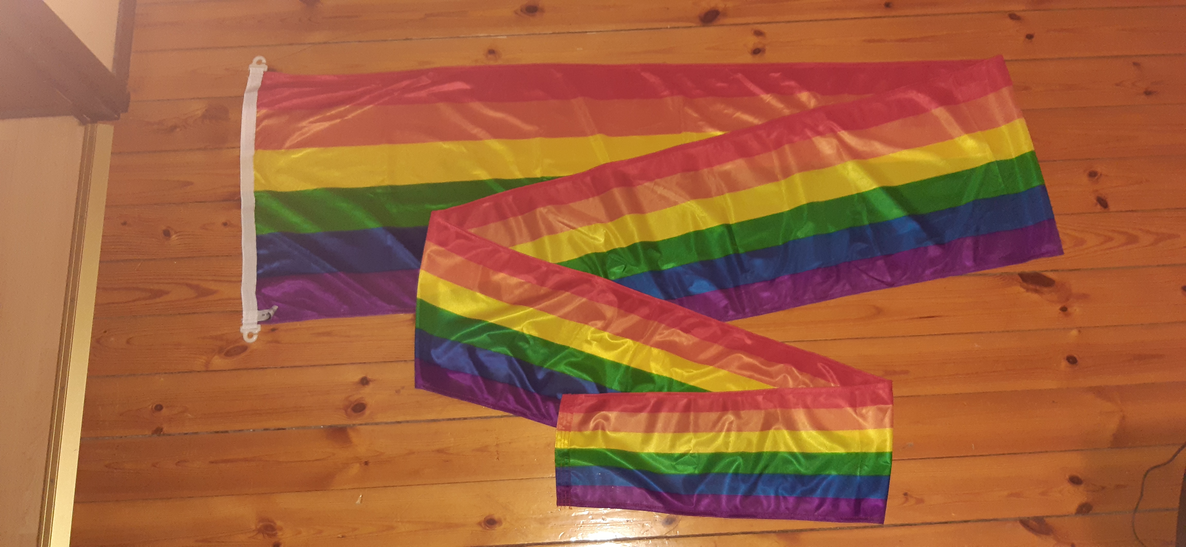 Ca 400x50X20cm genomtryckta regnbågs vimplar mycket lämplig att sitta uppe året runt. Alla 6 regnbågsfärgerna är alltså tryckta rakt igenom