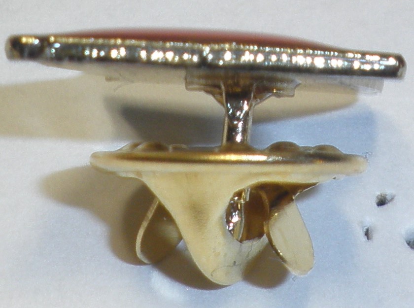 CA 10X15MM OCH DEN HAR NÅL MED STANDARDHÅLLARE PÅ BAKSIDAN. OCKSÅ BENÄMNT "BUTTERFLYKOPPLING"